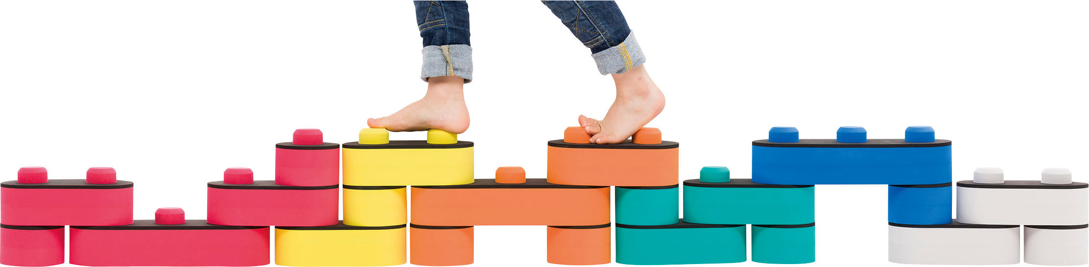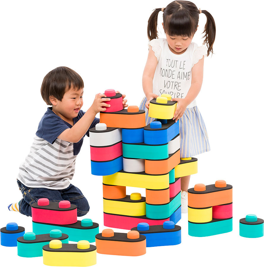 つみあげたり並べたりするだけでも力とバランスをうまく使わなければできません。アイデア次第で、橋をつくって渡ったり、椅子をつくって座ってみたり。転んでもソフトなブロックがクッションの代わりになってくれます。遊びながら、自然に認知機能と運動能力を養えるよう、色・素材・触感・サイズ・デザインのすべてを精神科のドクターたちと一緒に開発しました。