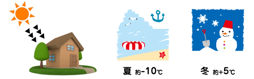 太陽光発電パネルを設置することで、夏場は約-10℃、冬場は約+5℃屋根の温度が調整されます。冷暖房費の節約になります。