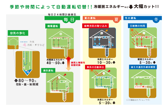 ジオパワーシステムは多機能型換気システムで、エアコンではありません。このため、温度設定は出来ませんし、それを必要ともしていません。自然のチカラをそのまま利用するため環境に優しく、従来の冷暖房費を大幅節約することができます。「夏は暑く、冬は寒い」-この当たり前の事を自然の力でちょっとやわらげ、日本の四季を感じながら楽しむ生活空間をご提供します。行き過ぎた「贅沢な快適」の暮らしより、本当の豊かさを感じる暮らしをはじめませんか?